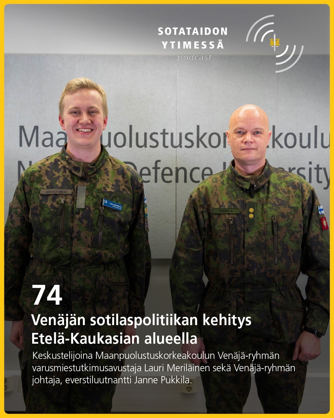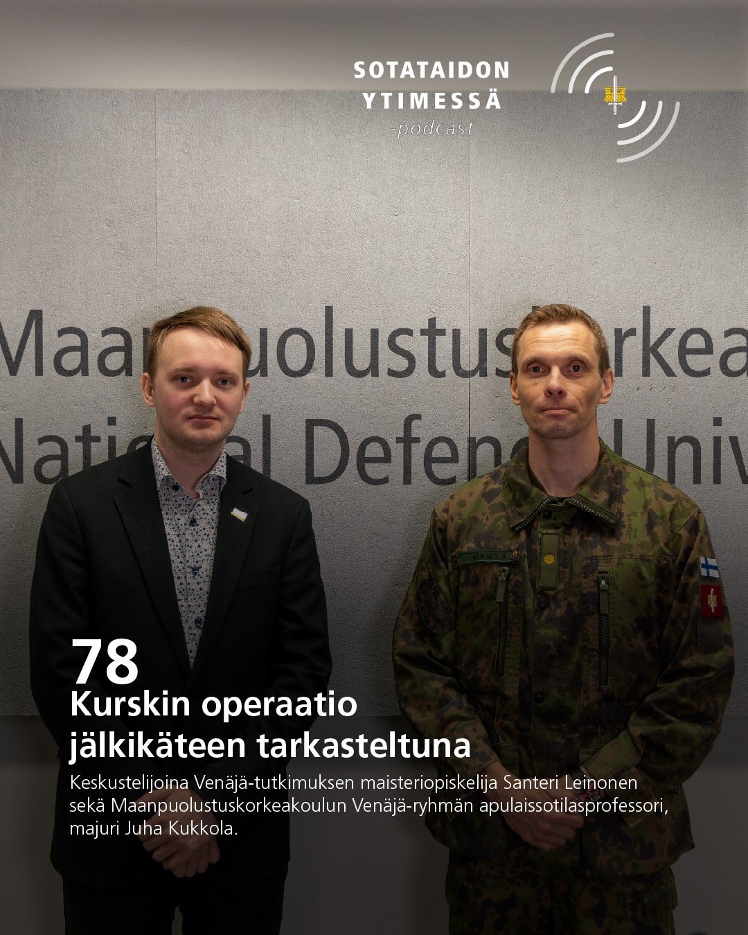 Miten Venäjää tutkitaan? Mitä venäläisessä yhteiskunnassa ja asevoimissa tapahtuu juuri nyt, ja miten se vaikuttaa maailmanpolitiikkaan? Miten tutkimus auttaa ymmärtämään näitä ilmiöitä? Jaksossa avataan Venäjä-seminaarin taustaa ja sen merkitystä sekä esitellään yksi vuoden 2025 seminaarin teemoista – siviili-sotilaallissuhteet. Keskustelijoina Venäjä-ryhmän johtaja, everstiluutnantti Janne Pukkila, erikoistutkija Pentti Forsström, väitöskirjatutkija Jonna Alava ja tutkija Oona-Maaria Hyppölä. Keskustelua moderoi varusmiestutkimusavustaja Lauri Meriläinen.
